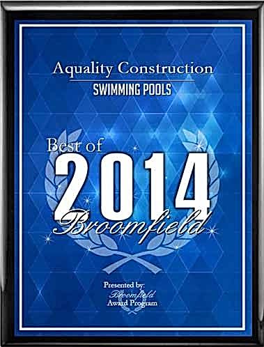 "Aquality Construction has been selected seven years in a row for the 2014 Best of Broomfield Awards for Swimming Pools and now qualifies for the Broomfield Business Hall of Fame... This is a reflection of the hard work of not only yourself, but of many people that have supported your business and contributed to the subsequent success of your organization. Congratulations on your selection to such an elite group of small businesses."