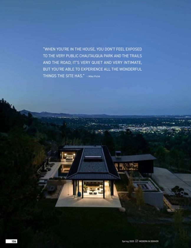 courtyard with a contemplative water feature. Each of the private spaces is designed to connect with the varied and remarkable views, landforms,